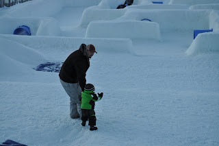 | We took the kids to a snow park that they had right outside our condo. It was full of mazes, slides, and tubes! I thought William would be having a blast, but he cried most of the time. Bless his heart! |